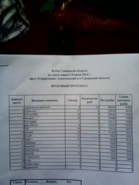 Про 8 сектор - Чемпионат прошлого года (зачет по двум зонам) - 7 место прим 8 рыб (Сто пудов), коммерческий турнир - 3 место (Карп бланш).Про 9 сектор - Чемпионат прошлого года (зачет по двум зонам) - 1 место прим 20 рыб (Два Санька), коммерческий турнир - 4 место (Два Санька).