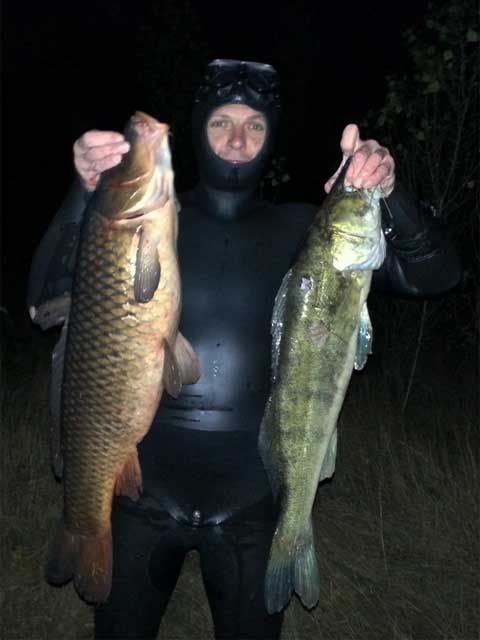 Всем привет!Никто не пишет отчетов, а у меня камеры нет хвалится чем то,напишу так.Выезжал последние 2 раза на ночного хищника,первый раз поехал вниз по волге, удачно нашел зачетного судачка на 2.250 и ружье заклинило,второй раз решил попробовать под городом, нырял до 10м.рыбы толком нет,один язек на 1-1.5кг,3-4 хороших окуня гр.по 700-800 и 5-6судачков до1 кг.Прозрак хороший метра 3, течка тоже не слабая,но рыбы и малька почти нет.Будем ждать похолодания воды и трофейного судака!!!