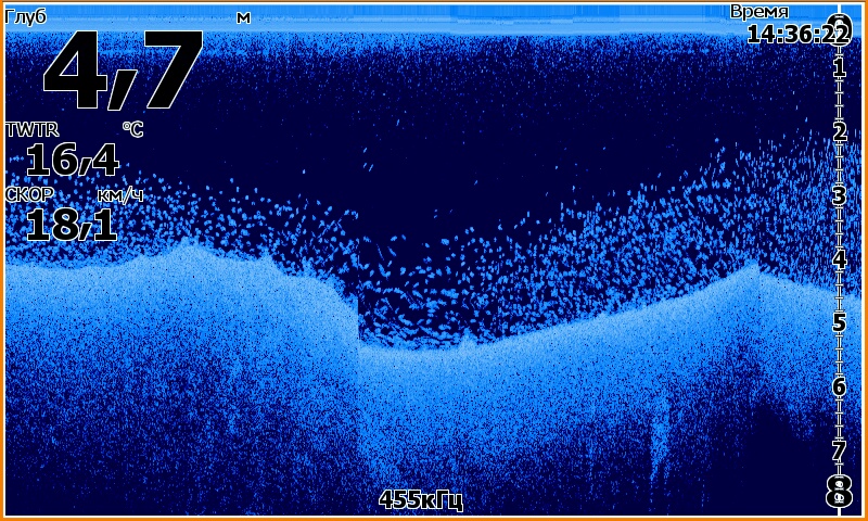 Проверяем место эхолотом. Стоит стая мелкой белой рыбы. «Качественной» кормовой рыбы совсем мало. Однако, место довольно стабильное, поэтому делаем несколько контрольных забросов. Поклевок нет.