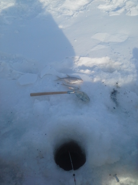 Расставил жерлицы. Десяток на щурку и 4 на Судочка.Пока вчера творил енту снасть придумал заклинание на судочка.Токо зазвав щурку флаг в 8-30, но мимо.И более по щурке поклевок не было.Не питая больших надежд на жерлицы по судочку, поклевок не ожидал.Но заклинание сработало.И флаг протащил пару метров и сход.С 9-30 до 11-30 четыре поклевки.Две на одну и ту же.