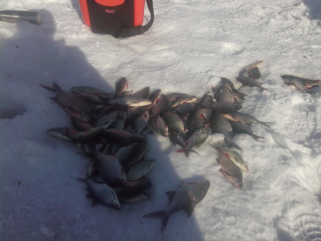 Всех с прошедшим праздником. Расскажу о вчерашней рыбалке. Вот праздник- так праздник выдался! А началось все позавчера. с товарищем отправились за Волгу на оз. Линево. Друг наловил около 4кг сорожки и шерманчика, у меня не задалось. По ходу рыбалки "скушали" 1кг водки. На обратном пути зашли на "ДНО" - еще пенного напитка употребили, а далее отправились ко мне- там догнались и решили пойти на праздник вновь на тоже место. По утру с больной головой выдвинулись. На сей раз успех был на моей стороне- взял "реванш" за весь, наверное, сезон. В итоге, вся рыба поймана с одной лунки. Решил остановиться в 14.00. Чувствую не донесу - полный ящик! 7,5кг отборного подлещика и красноперки! Настоящий подарок на мужской праздник! Спасибо чудо-погоде и рыболовному счастью!
