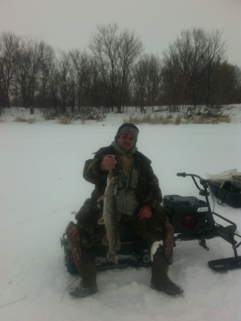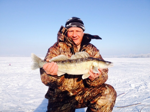 Добрый день, уважаемые форумчане! Jakkey, спасибо, что вспомнил обо мне! Ничего страшного, обязательно срастется: Земля круглая, Волга родная. Увидимся! Итак про сегодняшнее утро. Да что там про утро? И вечерок краем зацепим. Купил вчера мне напарник в 21.30 на пересечении Димитрова и Демократической аффффигенного бессмертника. Крупный, жирный, а что немаловажно - живой. Ну, думаю, если уж я сам от такого не отказался бы, то судак точно жрать будет, как из пулемета! Забираю в 5.00 Илюху, и в 5.20 мы уже раздалбливаем жерлицы, которые оставил на ночь. Больше никогда так делать не буду. За ночь три холостых выстрела, а канители-то!... проще было заново всё поставить. Ладно, ж... в мыле, морда в поте - я служу в морской пехоте: худо-бедно привели жерлички в порядок, выпили кофейку, перекурили. Ветер, как в аэродинамической трубе, да с морозцем. Погодка та еще! С рассветом по-быстренькому выстрелило четыре флага, но... в холостую. Начал подтягиваться народ... Подходят к нам двое. Парень по-моложе здоровается и спрашивает: "Кто с форума?". "Я!" - говорю. Познакомились. Показал, где расставиться (люди новые же!). Ну и опять все внимание жерлицам. А там (как мне подумалось) судак просто бухал вчера (праздник же!), и от пищи его с похмелья тошнило. Ребята поставили две щучьих жерлицы и , видно рещив, что результата по такой погоде не будет, через полчасика уехали домой. Алексей! Всё у тебя будет! Поймаешь ты своего судака обязательно! Нужно желание, упорство и подготовленные снасти. В любом случае - очень рад знакомству. Jakkey, ты прав: мужики празнуют *-е марта, гораздо круче, чем 23-е февраля! Я думаю, что этот факт и явился причиной неполноценного наличия мужского населения на льду утром 9-го марта. Ну не на погоду же опять всё списывать! А судак всё бастовал... И вдруг... Господи, я знал, что ты есть на свете! Флаг! Илюха вытаскивает свою первую двушку. И опять тишина. Видать судак из наших, из непьющих !;D Сворачиваемся. Илюха сматывает крайнюю жерлицу, смотрит на меня и восклицает изумленно: "Сидит!". Полкилошный судачек заглатил по самые... передать невозможно. И повис. Тоже непьющий. Молодой ишшо, потому что... Всю обратную дорогу Илюха канючил, ушатывал меня приехать вечером. Я был непреклонен. Жена уже обижается. Женский праздник, а меня дома не сыщешь. Поехал один. Результат - 17 поклевок из них 7 реализовал. Трех недомерков отпустил. Весело!!! прислал мне фотку, а я ему ответ:" Ты, зараза, специально, чтобы мне нервы пощекотать, собрал у соседей судака, сфоткал и мне послал!". "Да, никого не было на льду! Я один!" - говорит. Прое...терял я рыбацкий вечерок. Ни хвоста, Вам ребята, ни чешуи!