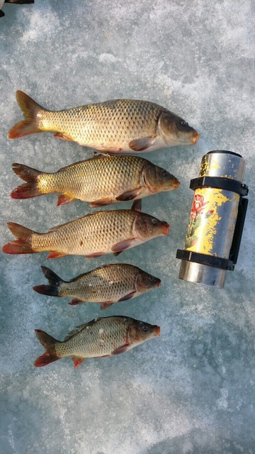 вернусь конкретно к теме...Были в компании трех любителей карася на юге области, с пятницы на субботу. Выезд не первый, практически все поездки успешны, да и размер рыбки приятный. В улове преобладает карась, размер разный,кто как приспособился) а так от 80гр и до 400гр примерно.. Своим вниманием,не редко балует карпуша. Много обрывов и поломанных мормышек, но вес пойманных не перевалил за два кг, хотя на глазах более удачливые, вытаскивали и свыше трех.. Из компании поймали все, обделенных карповыми поклевками не было) результат последней вылазки на фото. Карася фоткать не стал. Сезон еще далеко не закрыт