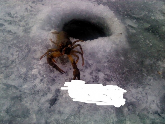 Друг поймал маленькую щучку и отпустил. Находились, набурились, надышались чистым, сосновым воздухом, сменили 3 места. Но ящики веса не набрали. Под вечер у меня были две щучьи поклёвки, одна перед лункой успешно соскочила, вторая съела мой любимый балансир ( фото)