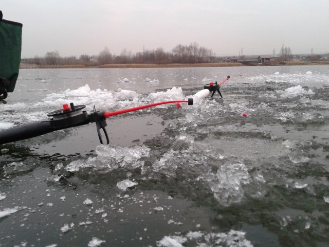лед крепкий,даже не трещит [smile=klass]погода классная [smile=klass]за весь день видели 9 флагов,из них 4 реализации,и одна отправлена обратно ;)3 других в силу состояния здоровья остались :Dно с отсутствием воды,пропала надежда на поимку более крупной щупокабры