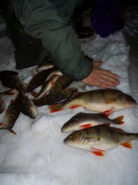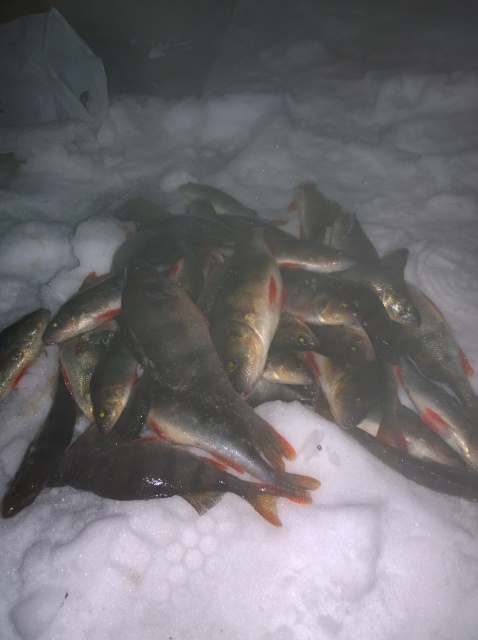 , а сам вернулся к окуням.Прошёлся по старым лункам-ноль,ушёл подальше от камышей и немного нашёл полосатого.С новой лунки один,два и буришь дальше.Горбачей не было,но и мелочь не донимала,не считая сорожки,которая не давала мормышке упасть.Был один обрыв