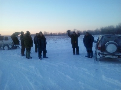 ) и решил добавить свои две копейки:вчера, утро,Луговое(по плану). Выхожу из подьезда-сосед мудохается с колесом(нашёл время!). "Дай насос" Ну как не помочь бедному самаритянину в 5 утра. Выезд из города-светофор-переключение с красного на зелёный - машина глохнет. Но знаки судьбы не для чудаков на букву М. Добрался до леса перед турбазой, свернул налево, пропёр до нужного поворота, а дальше колея не пробита. Поехал по чужой пробитой и выехал на берег речки Безенчуг в 700 метрах от её впадения в затон. Вышел на лёд, а там