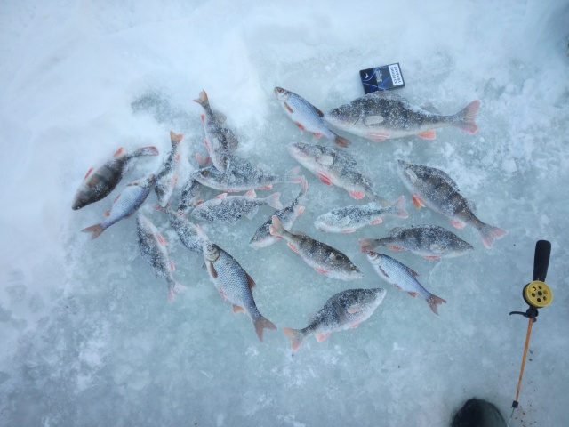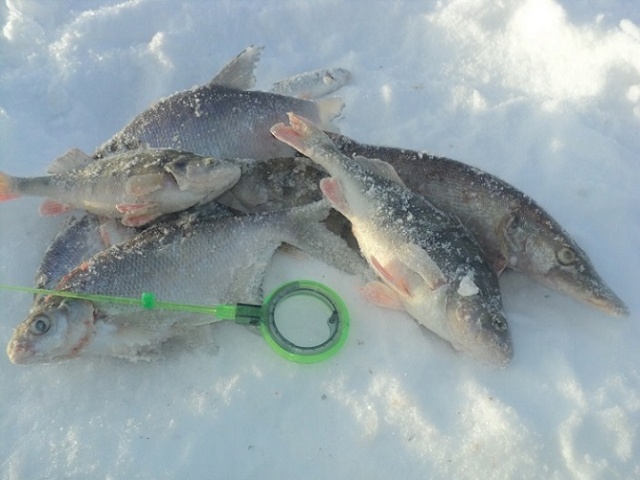 - ловилась сорожка в прилове с густерой ладошечного размера, стаю удерживал прикармливая мелким мотылем каждые минут 20 в обе лунки и самодельной прикормкой образующей мутный столб, привлекающий рыпь. Ловил на стоячку, после обеда начала брать и на медленную игру. Мормышки - уралка 3 мм вольфрам, на второй чертик 4 мм+овсинка. Клев продолжался пока солнце не ушло за дорогу, часов до трех. Много сходов, неверных подсечек, но рыбалкой доволен! В итоге наловил 40 рыпь около 3,5-4,0 кг.