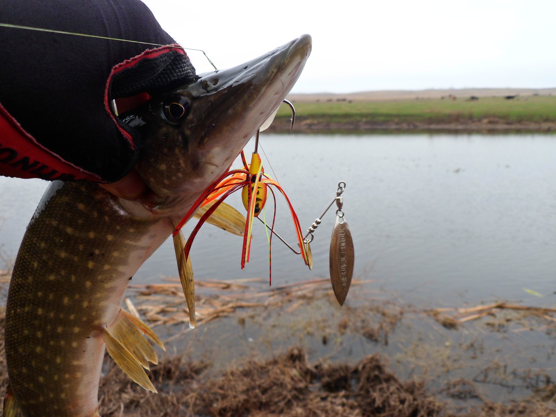 Основная проводка для спиннербейта – равномерная. В зарослях травы, проводку можно разнообразить небольшими паузами в окнах чистой воды, если позволяет глубина. Очень эффективен прием с забросом спиннербейта в траву. Не страшно, что спиннер идет не касаясь воды. Щука обязательно его заметит и будет сопровождать, до тех пор, пока он не окажется в воде.