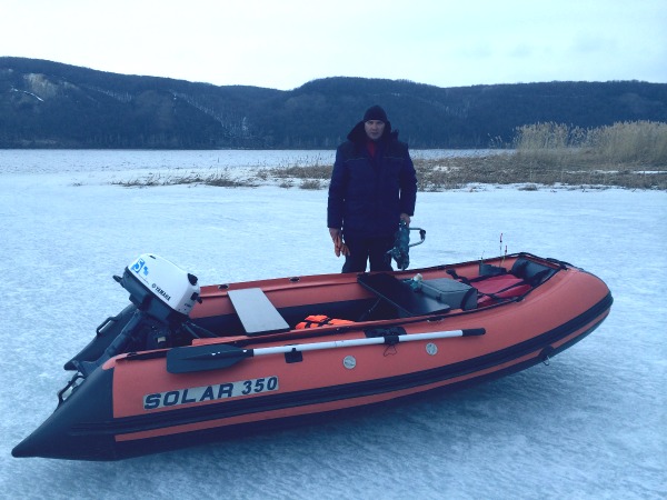 Когда вытаскивали назад лодку ,случилась авария с телегой,оторвало колесо об лед,еще и набрал полные сапоги воды