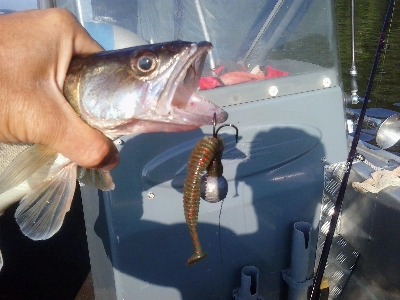 Тоже на ребристый виброхвост от F.S.Lures. Но уже в бОльшем калибре (около 5 дюймов).