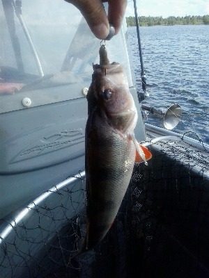 Изучал новые места-точки на будущую переспективу. Ловил на джиг. Клёв ровный хороший, пусть и без "раздач", но клевало стабильно почти на каждой точке где вставали (а точек мы проловили не мало). Видать, непогода активизировала клев хищника. Порадовал средний хороший размер щук, особенно для конца июля. Мне попалась одна достойная. Жаль, у напарника сошла хорошая щука (возможно была трофейной).