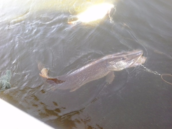Отлично. Снова заброс и снова почти сразу ударище!!!! Чувствую, что снова щука, но побольше предыдущей. Так и есть 4.8 кг. Красота!!!