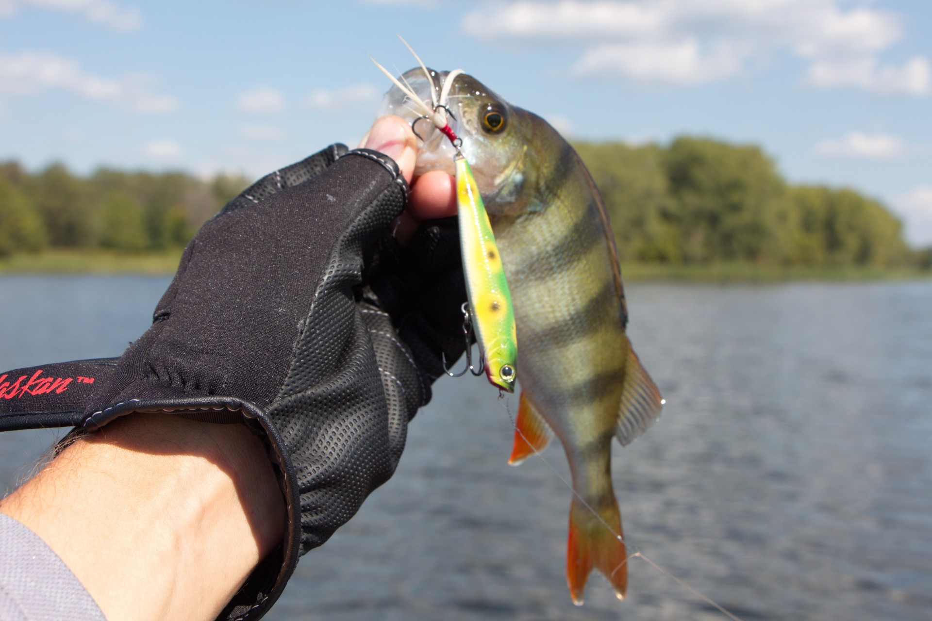 Когда окунь поднимался и начинал котлить, лучше работал уже Gunfish 75.