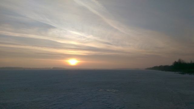 Утро выдалось просто роскошным! Тишина. Ночью слегка подморозило и по льду шли, как по асфальту. Окунятники двинули вглубь затона, мы же, те кто по бели, к выходу. У кромки льда, на воде плавал пяток лебедей. Метрах в ста от них, куча чаек. Прибыли, значит.