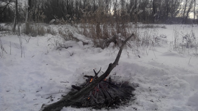 Самое тяжелое было перейти Волгу со шмотками тропа с вешками-но перемело и ветер в правый глаз и -21. В протоках полегче. Топали около часа-тут друзья звонят-твой уазик орет и не останавливается(Ваня в шоке).Но я не переживаю-у меня в багажнике запасной 110-амперный,ну и всякие тросы(2 шт) лопаты(2 шт) и т.д.Ну поорал и успокоился.Ну а теперь про рыбалку.Оказались первыми-разбрелись в поисках окуня.Ну и я как старший в этой компании забурился в самых уловистых точках(как мне казалось).Но времена меняются Молодежь-более удачливая-Пробурив пару лунок они начали ловить-где раньше клевала одна лишь мелочь.Ну и сработало правило-На рыбалку не бери рыбу с собой.Но это я специально взял окуней и коптилку-чтобы не замернуть.Вот мои друзья Леня и Илья.