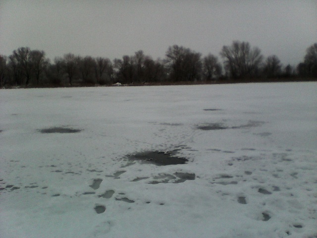 Неделя тепла убила все перспективные точки на Самарке в р-не.мясокомбината. Вышел на русло и увидел вот такую картину. Пришлось искать новые места. Льда как такового уже нет ,а вместо него снег см.10-15.Лунки можно ни бурить ,поставил бур надавил посильнее и лунка готова. С утра ни клевало,первого судачка поймал в 13.30 и до 16 еще два берша. Пора наверно на жерлицы переходить в затоны.