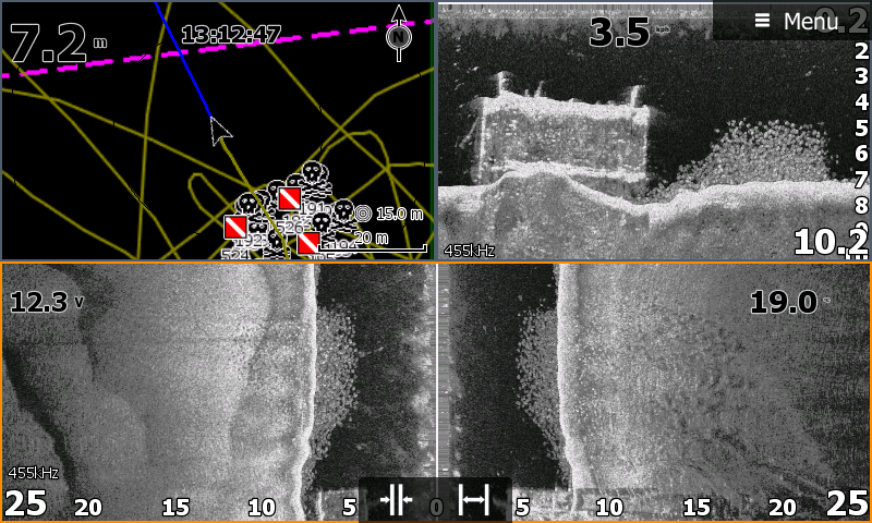 В последних версиях ПО на Elite Ti и HDS Gen 2 и Gen 3 это делается одинаково. Кнопка питание. Затем в меню выбираем "Редактировать" и добавляем нужные данные для наложения на экран. Тут же можно выбрать размер значка, его тип, цифровой или аналоговый, и переместить пальцем в нужное место экрана.