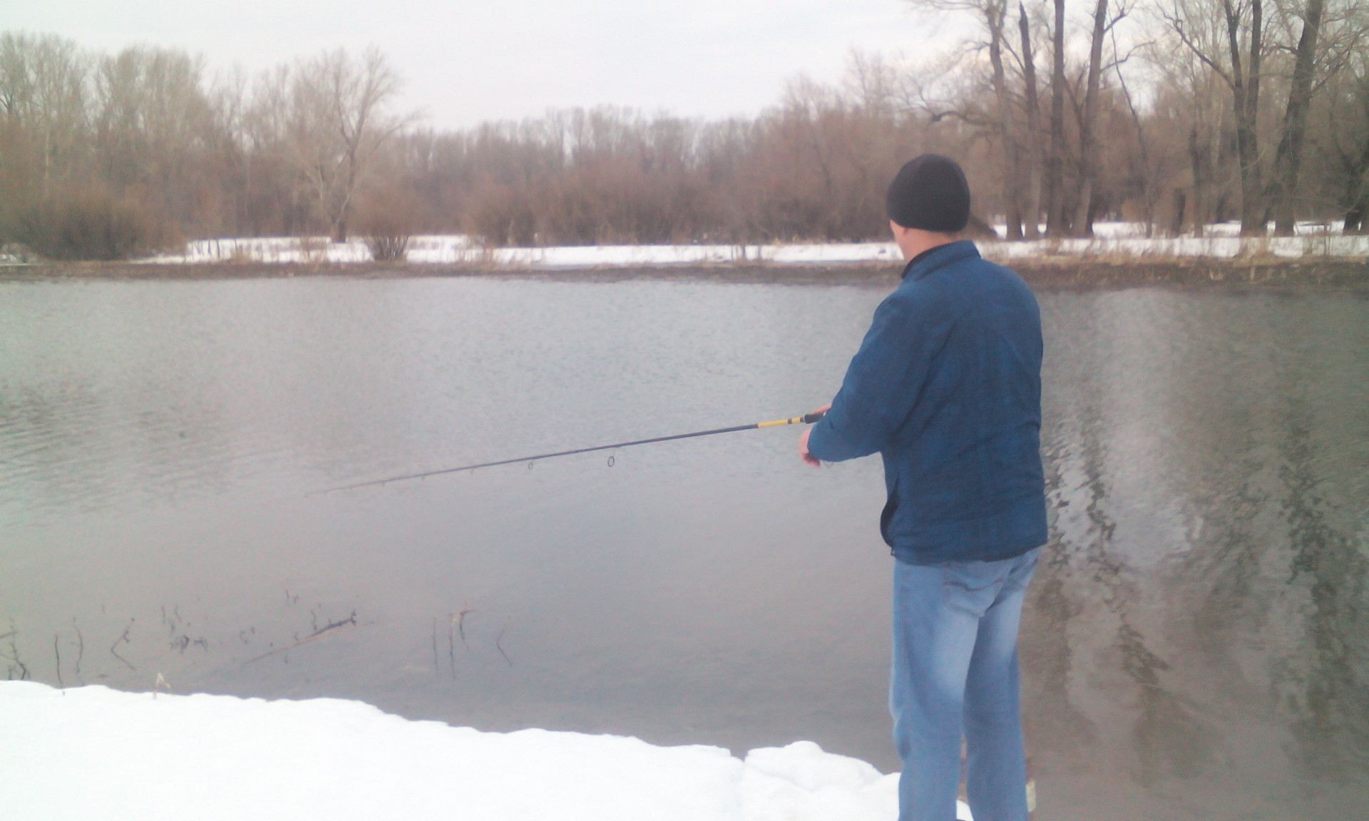 По началу собирались просто покидать спиннинги,глухозимье всё таки,максимум расчитывал только на окунька с пол ладошке