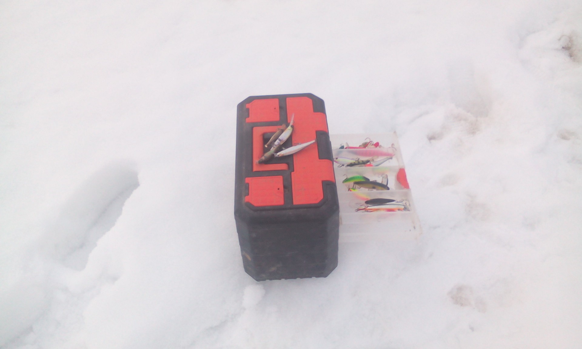 Сегодня с товарищем по оружию тоже открывали сезон жидкой воды. Выехали часов в 7 утра на поиски жидкой воды. Вода была найдена. С рыбой было сложнее - отзываться на наш силикон она явно не желала. Пару, тройку часов позади и не намека на поклевку, решаем поискать жидкую воду в другом месте и желательно с рыбой. Жидкую воду снова нашли. Осталось дело за малым. Но снова полоскание силикона не приносит результата,хотя делал ставку на силикон - набрал полный рюкзак. С собой помимо силикона завалялась коробочка воблеров. Ставлю Чики 80 от П21 и о чудо-шнурок грамм на 300 соблазнился - начало есть, сезон открыт хорошо, но аппетит приходит во время еды - хочется еще поклевок, да побольше, побольше.