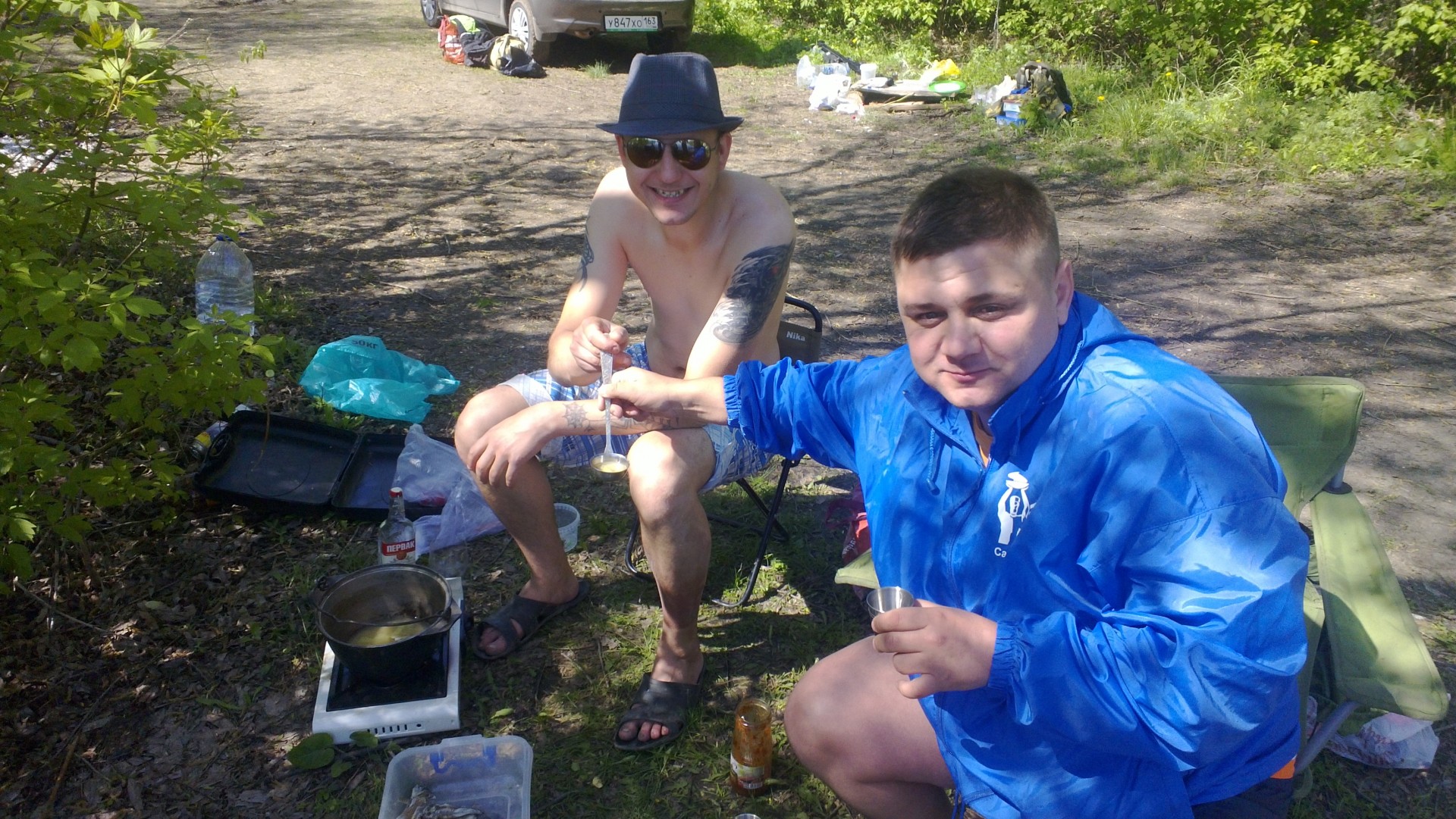 Конечно первым делом мы собрали снасти и закинули наживку в ожидании долгожданной поклевки, затем разложили наш нехитрый скарб, налили по рюмочке и полелись душевные разговоры под дымок костра