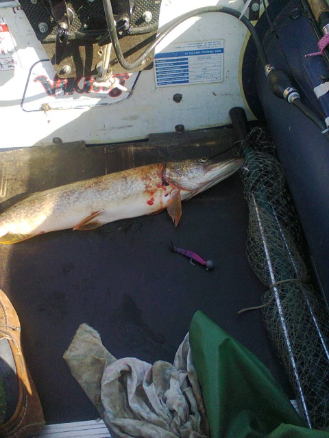 . В субботу с утра поехали спиннинг покидать. До обеда по нулям. Ровно в полдень, за створами, смотрим, идет троллингом катер и у нас на глазах ловит щучку не большого размера. Мы с братом решили тоже попробовать потрелленговать. Не успели проехать и 10 метров,у меня спиннинг в дугу. Ну думаю зацеп. Пока брат выбирал свой воблер, я начал подтаскивать лодку к зацепу. И тут видим как в метрах пятидесяти мой зацеп вылетает из воды иделает красивую свечку. Вобщем приняли мы ее на борт. 2,5 кг. Все вроде бы хорошо, но мне рыбачить троллингом не понравилось ( это моя первая щука на троллинг). Поклёвки нет, адреналина тоже, вобщем не моё это. Кстати брат со мной согласен. Пассивная рыбалка не наш метод! Всем ни х. ни ч.