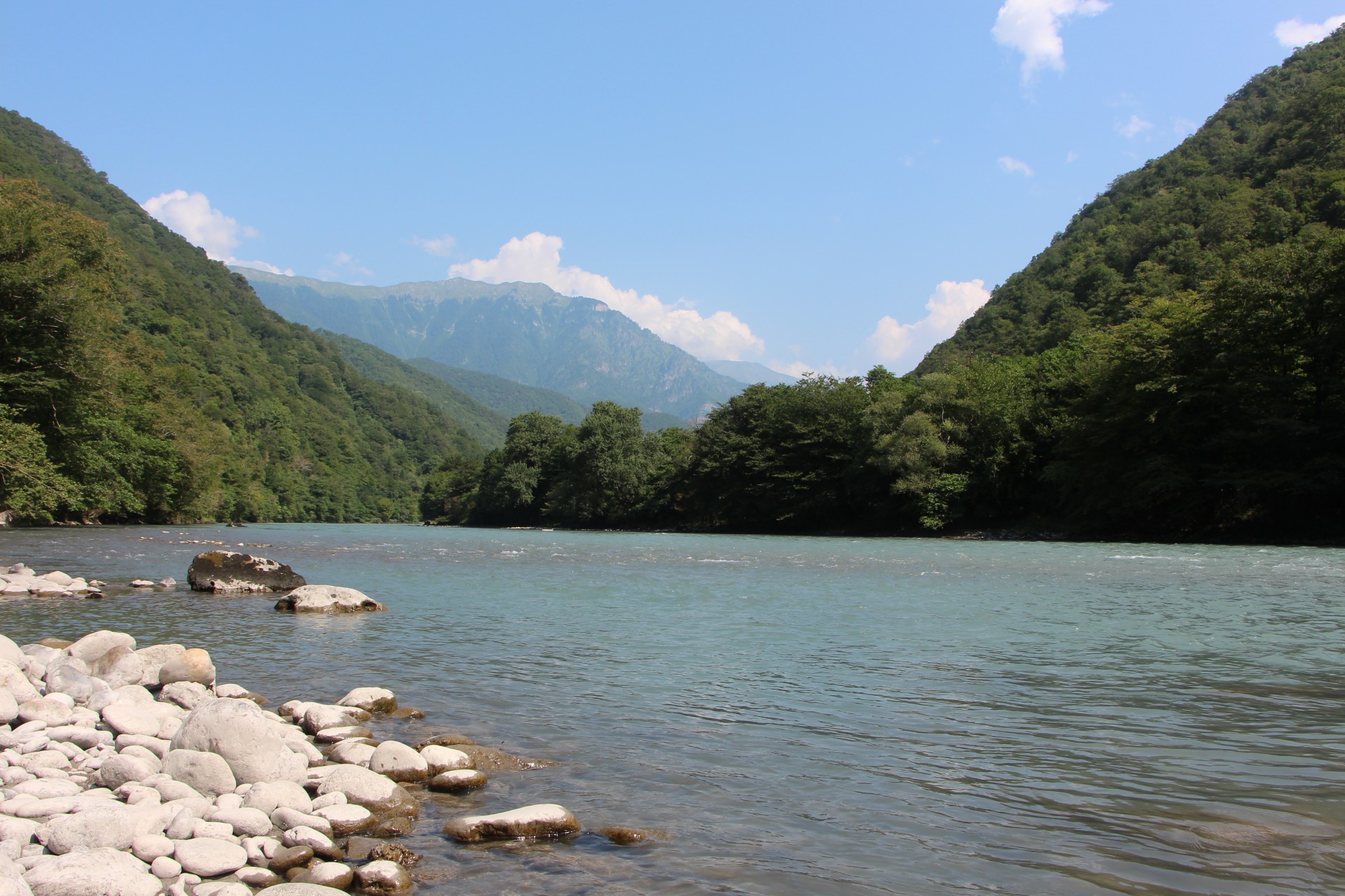 Ближайшая река в доступности от Пицунды, где мы обосновались в гостях – Бзыбь. Бзыбь – мощная и полноводная река, которая питается водами нескольких рек поменьше. Она протекает по живописному ущелью. По дороге вдоль реки можно встретить много культурных и природных достопримечательностей.