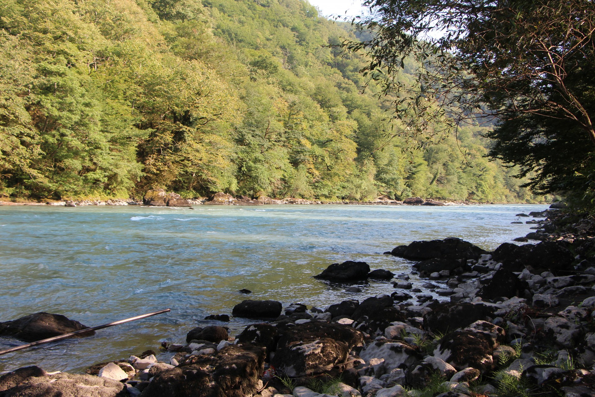 Это удилище создано именно для такой рыбалки, для быстрых стремительных рек и шустрой сильной рыбы. Кстати, в реке Бзыбь встречается и лосось. Но сейчас кажется не сезон. Вот бы его поймать! Борьба будет на равных!