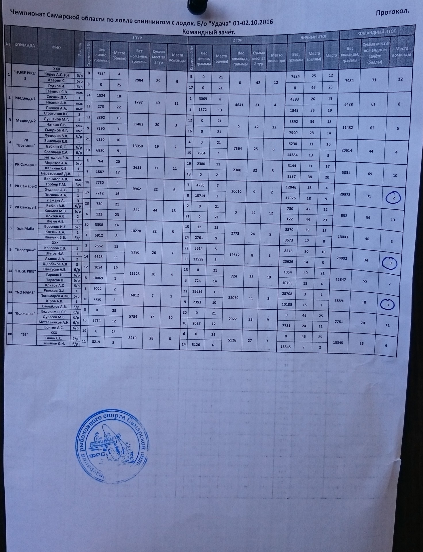 ловля спиннингом с лодок - командные соревнования(парами).
