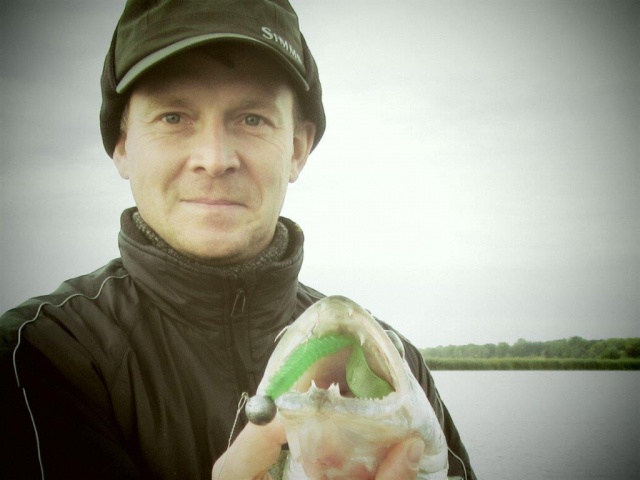 Отпускаю пробую дальше, а дальше тишина, пробую на воблерочки - никого, решил поменять место, форсировал одно болото из камыша выше моего роста, нашел хорошую поляну, которая была свободна от людей и начал джиговать, с первой точки никого, смещаюсь и в одной из проводок - четкая поклевка с выброса и приятная тяжесть, выважиние и фото на память - бершик