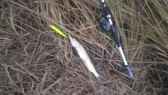 Приехали на водоем,штиль,ветра нет,легкий снежек,стал пытать счастье на УЛ, поймал одного шнурка и окуня с ладонь,потом замучили зацепы за старые сети( тут беспредел полный творится,даже местные деды жаловались что рыбачить не выносимо даже на поплавок),было решено взять комплект с шнуром потолще sunline super PE 1,5 и почистить местные водоемы, куча старых гнилых сетей вросших в ил и раколовки вдоль берега связанные друг с другом, вытащенное орудие браконьеров благополучно сожгли, после чистки водоема решил покидать приманки покрупнее, силикон в среднем 4 дюйма и они себя показали лучше,поймал еще 6 щук около килограмма и 4 слил у берега,у друга попалась за весь день всего одна,но на 2-ку.