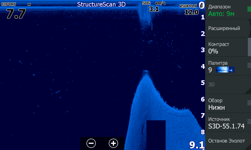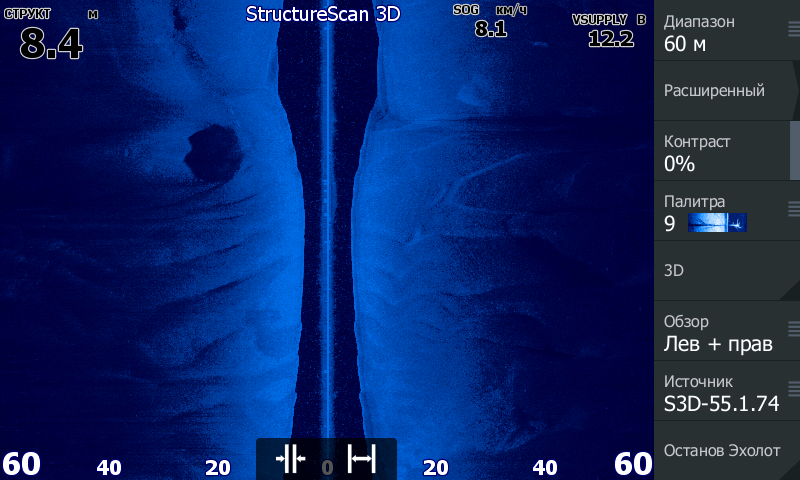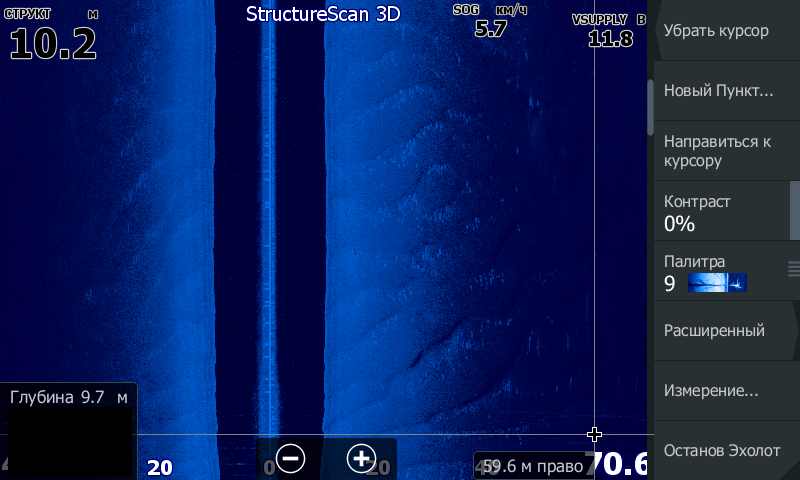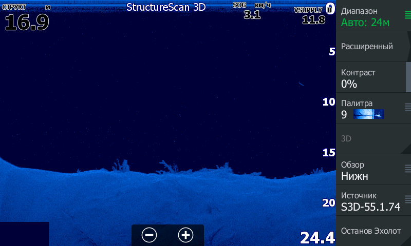 На воде сутра до вечера. Пройдено порядка 25км в режиме поиска(скорость 3-7км/ч) уткнувшись в экран Lowrance HDS 9 Gen3. В кабине webasto и три термоса чая, а за окном жуткая метель. Всё располагало к поиску рыбы, но рып найден не был. Практически полное отсутствие сигналов рыбы на эхолоте, за всё время, на двоих всего лишь несколько поклёвок. Волга как мёртвая=((