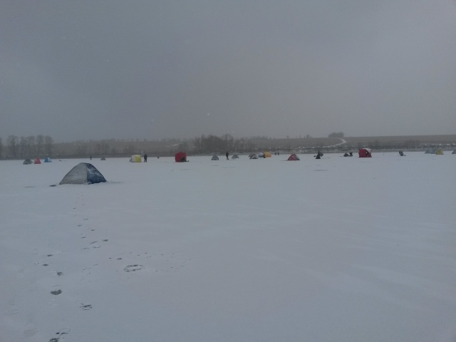 Успел с утра прогуляться единственный раз по чистому полупрозрачному льду, матовому, шершавому и нифига не скользкому, а через несколько часов он был укрыт 4мя сантиметрами снега, и лунки старые уже не видать...