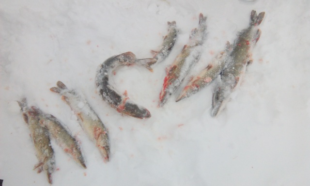 Щука била живчиков наших быстрыми выходами... 1 выход в 10 часов, за 5 минут 3 флага (2 взяли); 2 выход в 12 часов загорелся флаг (взяли); 3 выход был в 2 часа, одновременно зажглись 2 флага (1 взяли, 1 сход под лункой)...