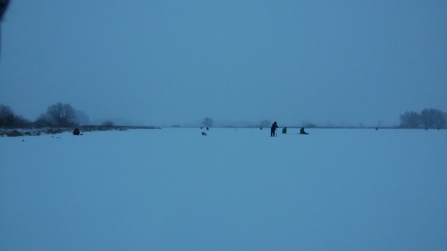 4 декабря воскресенье. Кто куда, а мы в "Луговое".Поехали туда по зиме в первый раз. Правда заранее знали, куда пойдем. Один хороший человек на карте показал перспективное местечко.Немного припозднились. На заветном месте уже стояло несколько жерличек. Двое рыбалаев активно заряжали свой боекомплект. Конкуренция. Пришлось уйти дальше.Было нас четверо. Двое поставили жерлицы и стали мокать балансиры. Для меня же безмотылка интересней. Я побежал искать рыбу. Тестил самодельную безкивковую удочку с карбоновым хлыстиком. Ощущения от поклевки и подсечки просто классс!!! Чуйка как у дорогого спиннинга.Можно рыбачить с закрытыми глазами.Но, по моему мнению, она лучше работает с чертиком или с мормышкой и мотылем.На "кошачий глаз" поклевки были, но гораздо реже, чем на удочку с лавсановым кивком.Периодически ветром доносило радостные крики моих товарищей. То на балансир ввалилась двушка, то загорелся флаг на жерлице. Из балансиров отлично отработал БАЛТИК №4 с голубой спинкой. Что удивительно не было ни одного окуня, только щучка.Мне же счастье улыбнулось только уже к вечеру. Попались несколько крупных сорожек и окуней.Ради них стоило проехать 100 км. Всю пойманую рыбу отдали одному товарищу. Нести все ему было очень тяжело.