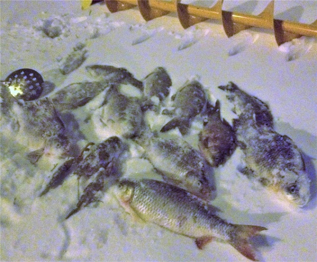 Мне кроме карася попалась одна сорожка на 250г и крупный рак. Клевало вчера лучше на игру мормышкой. За день пробурил и опробовал около 25 лунок (новый бур HEINOLA просто класс!), с одного места ловил не более 5шт, так что палаткой опять воспользоваться не удалось. Всего улов составил 2,5кг.