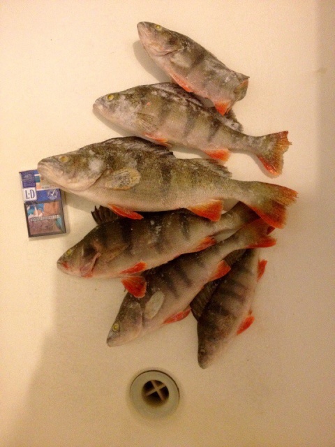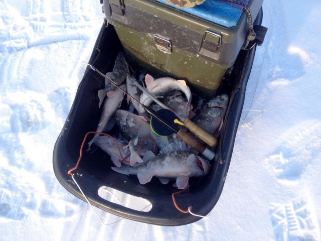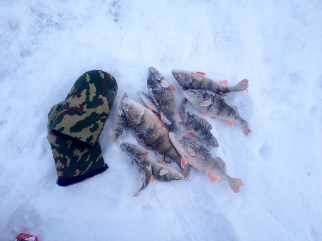 Был сегодня опять на Волге, "Маяк", поймал всего шесть штук, два кило. Ловил только на гондурас, не мормышил. Так то можно было больше поймать. На мормышку. И тактику избрал не верную, нужно было высиживать на одной точке, где окуня с утра нашёл, а я пробегал впустую, окунь так на той точке и стоял, клевал выходами иногда. Мужик на одной лунке дооолго сидел, и периодически ловил. А я бегал. Впустую. Извиняюсь за фото домашнее, на реке холодно было фотать