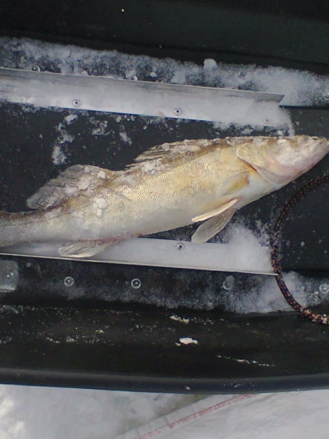 Потом был досадный сход на лунке – мормышка зацепилась об лед. И где то в районе 21-00 ловлю еще одного – на 900 гр.