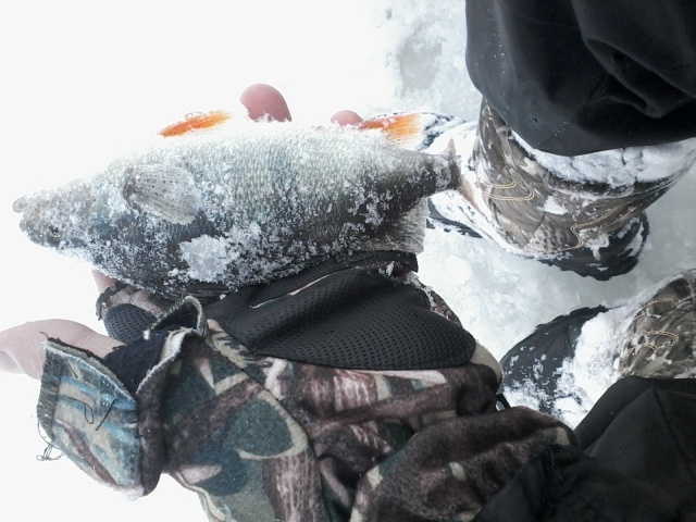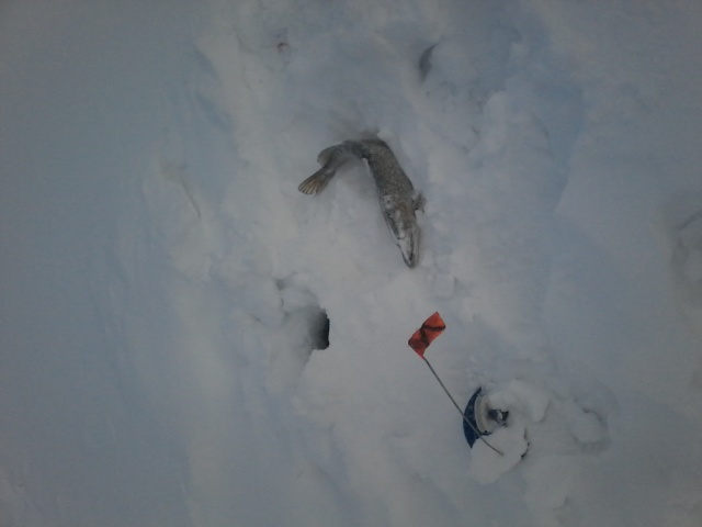 Итог сегодняшнего дня три хвоста несерьезного размера, все пойманы после длительного раскачивания лунок разными приманками. Наверное все же надо что то менять....потому что у напарников и голов больше, да и размер получше. Повеселил факт разлова суперновейшей блесны "Гайка-77", при том что в той лунке она была 3-й по счету приманкой