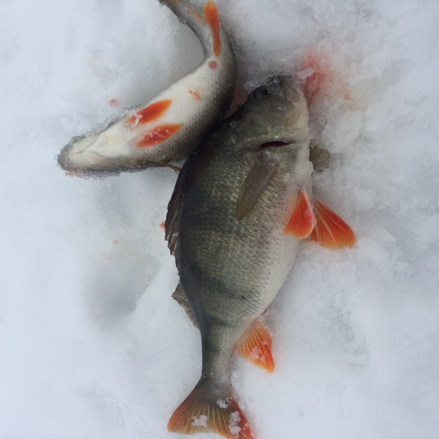 Всем здорова! Сегодня рыбачил на Зининском. С расвета и до полвторого дня. На жерлицы три щукины детки,на балансир около 1.5 кг мелкоокуня. Погода класс,воздухом подышал,лунки побурил.вина попил,рыбу видал... Как-то так.