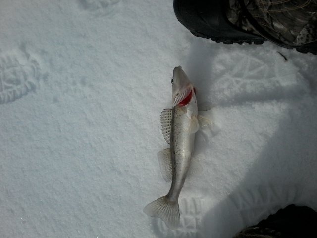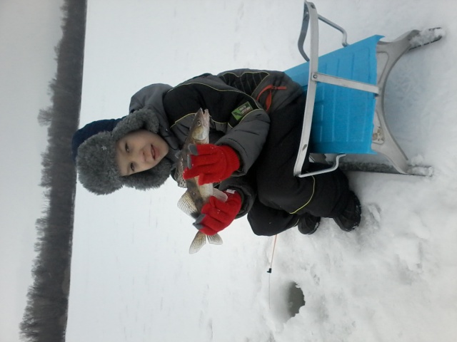 Хозяин кучки пригласил сесть рядом и наслаждаться клёвом, но нет, не наш размер, мы за горбачами. И вот, мы на волшебной яме, "Гандурас" в бой!!! Сашка сразу тащит! Бегу помогать, в лунку на 130 не лезет. Дал мне подержаться за леску, а сам багром принялся работать. Кое-как затащил в лунку такой хвостище, будто у дельфина. Хвост оказался лещовым, я схватил за него, а он как даст!!! И Митькой звали. По моему прикиду кг2 точно был. Затем он поймал 2 окуня грамм по 450. А моё чудо молчало. Уже стало темнеть и я твёрдо понял, что не быть мне членом гильдии... пошёл на сорогу. За 20 минут поймал немного, но хоть поклёвку видел: