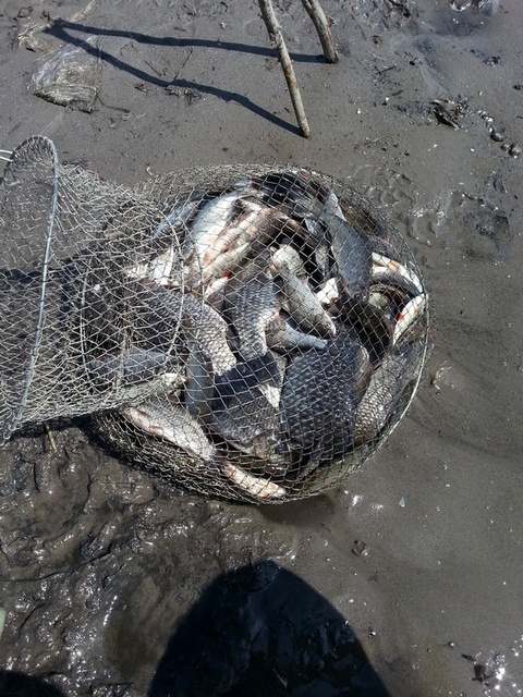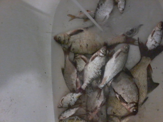 Сегодня в 4:00 с батей умчались на речку Бирля. Погода ужас, сильный ветер и холод. Отец ловил на поплавок. С утра до обеда у него клев был хороший, ловилась густера, сорога, и красноперка с некрупным карасем. Я ловил на фидер и донку, клевало постоянно на протяжении всей рыбалки. Но размер не радовал совсем... с утречка еще куда ни шло выдернул с пяток средних карасиков по пол кило, а потом одна мелочь... в 14:00 поехали домой.