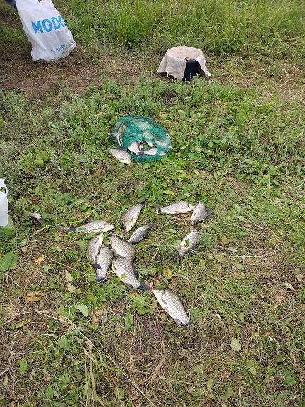 Улов хороший. Карасик ровненький, полторы ладошки в основном.