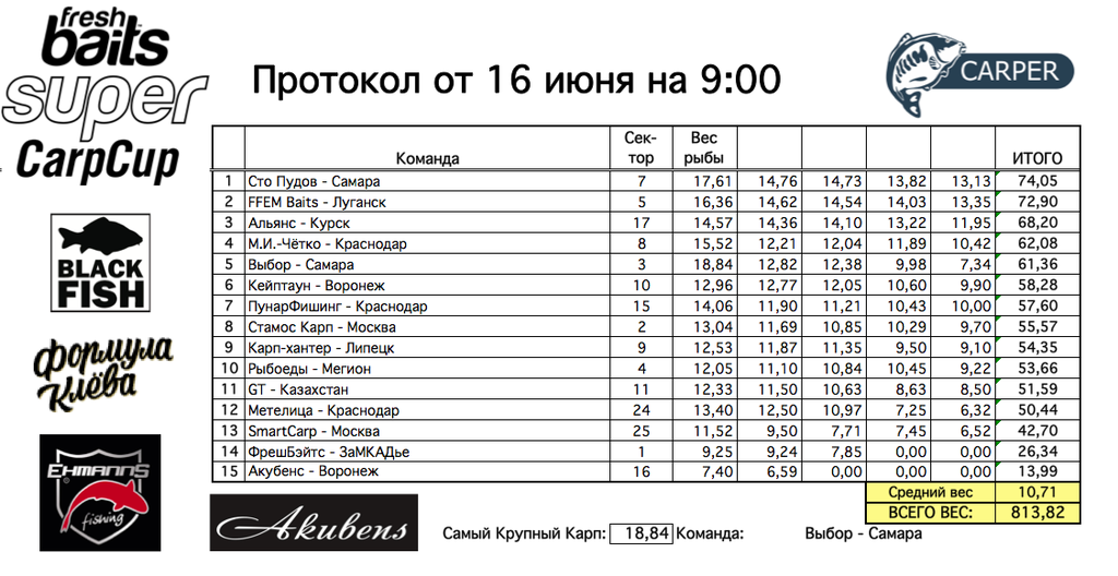 Турнир будет прозрачным, честным,не дорогим, с непредвзятым судейством. Взнос 25000 рублей с команды. Призы:1 место - 50000 рублей.2 место - 40000 рублей.3 место - 25000 рублей.Биг Фиш - 25000 рублей.Плюс, естественно, призы и сертификаты от Ориент Родс. Список команд скопирован с предварительной регистрации команд:1. Десант 63 (Моисеев,Небольсин)...15.К-63