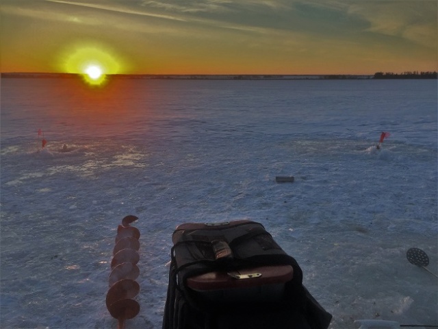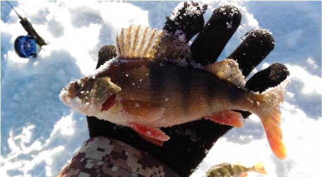 Последний день выходных- праздников перед рабочими днями обязательно нужно было провести на рыбалке. Несмотря на предупреждения и порывистый ветер, предсказатели погоды рисовали солнышко на своих интернет страницах. И как бы не готовился заранее, всегда на рыбалке образуется узелок на леске или расстёгивается карабин. В этот раз, пробежав по лункам балансиром четвёркой, и получив поклёвки с нулевой реализацией, предпринята смена приманки. На пятый выбранный мной балансир троечку_ полосатый начал выскакивать из лунки в руки. Появлялся азарт, мелкий-средний окунь брал у дна, покрупнее полметра от дна и до края лунки. И классика жанра- один бандит уходит с подвесным тройником, замена. Потом баланс превращается терминатора, но окунь держит темп до последнего. 3км до точки высадки обратно и домой.