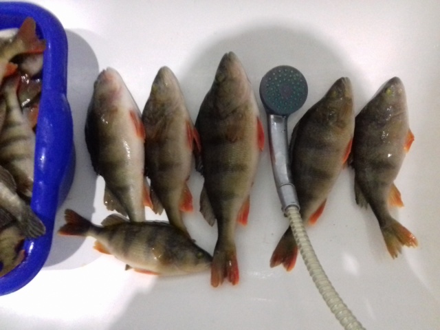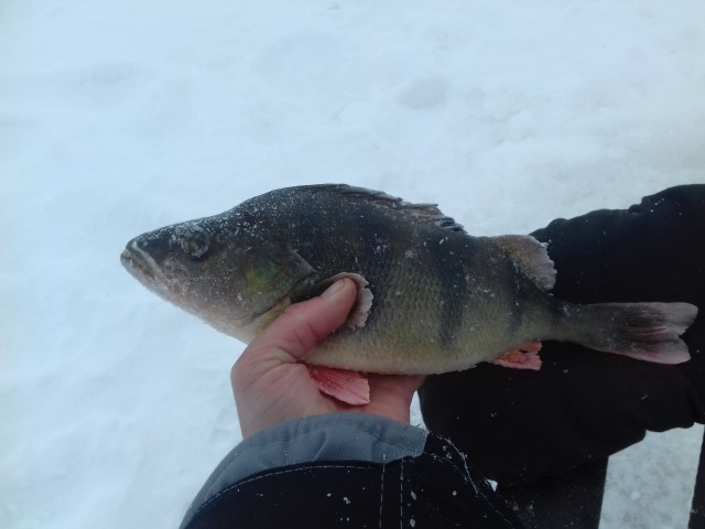 Окушка сегодня удалось наискать на без малого 4 кила, штук 40 матросов "утопил", да на живца штук 10 отдал. Biggest fish около 300 грамм влетел единственный, черпаком помогал ему из лунки выпрыгнуть, чтоб леску сберечь.