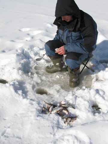 )с блесной. Но только в одной лунке нарвался на стайку и поймал десяток неплохих окуней.