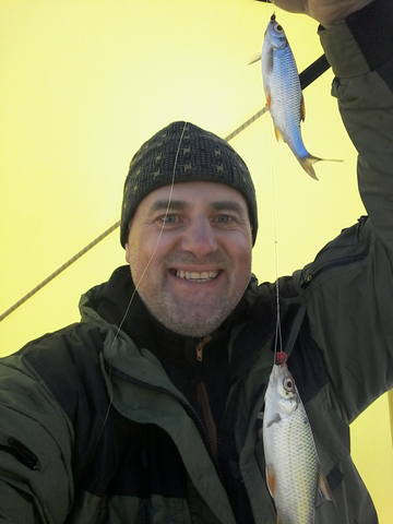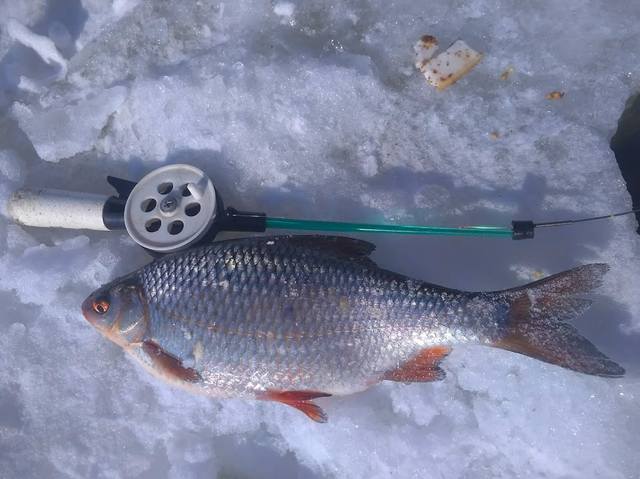 . Покидал шмурдяк, завёл собача и тут флаг, килошка, сестра первой. Оставляю жерлицы в гордом одиночестве до утра. На следующее утро меня встречал один горевший флаг, с пожёванным живцом, на остальных следов покушений зубастой не было. Сел ловить сорогу , сегодня она была активна, размер от живцовой до ладони, до двенадцати три поклёвки на жерлицы две килошки, и одна около двух.Выходные прошли на зачёт