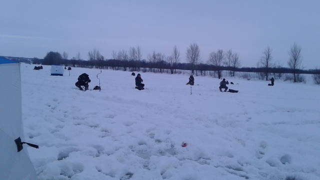 В субботу привычной компанией выехали на Волгу, в затон, чью фамилию я ношу. Но моя мне кажется древнее. Нужно будет обратиться за разъяснениями к Северину, пусть внесет историческую справедливость-кто раньше-я или моя фамилия, или затон. Прибыли, десантировались и оказались в воде, почти по-колено. Снегу -по пояс, воды почти по колено. Сели не там где хотели, а там, где удалось утоптать из снега площадку и сидеть выше уровня воды на льду. Пока шел 20-ть метров до точки, черпанул обоими сапогами воды выше колен, мягко сказать"плохо", в эту пору сидеть с мокрыми ногами 8-мь часов на льду. С великим трудом пробурил две лунки-два оборота и бур вынимаешь. Палатку не смог поставить, сидел на пятачке 1,5 метра в диаметре-кругом вода. Ветер и морозец не способствовали внутреннему комфорту. Ловил с одной лунки, одной удочкой. Хотя пользовался тремя, обрывы и запутывания лески привели к тому, что я перевязывал удочки 9-ть раз. Как пингвин на точке высидел 8-мь часов, было не жарко и руки стыли. Ходить куда-либо не хотелось, что я больной что-ли, бурить лунки тоже больше не хотелось. Пришлось извращаться и ловить с одной лунки. Извратился, поймал 8,5 кг хорошей сорожки. Бонусом на донку влетел окунь весом 0,5 кг. Крючек-заглотыш, леска -0,10 мм. Даже вспотел. Назад подушка ехать не хотела, еле тащились . Народу на водоеме-практически не было. Два каких-то удальца пешком дошли до входа в Тушинскую протоку со стороны Кривуши-дошли ли назад-узнаем в соответствующей ветке " ЧП на водоеме". Поездка-жесть, удовольствия от рыбалки-море. Приехал-никакой, чай из калины с медом- вечером. Утром- интенсивная зарядка, ледяной душ Как огурчик-держись рыба, не оставим никаких шансов.
