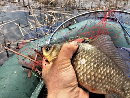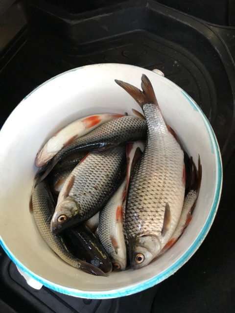 Допишу. Карась весь икряной. Такое чувство, что он стоит на грани чистой воды и камыша (воды в водохранилище мало) и ждёт сигнала к икромёту.
